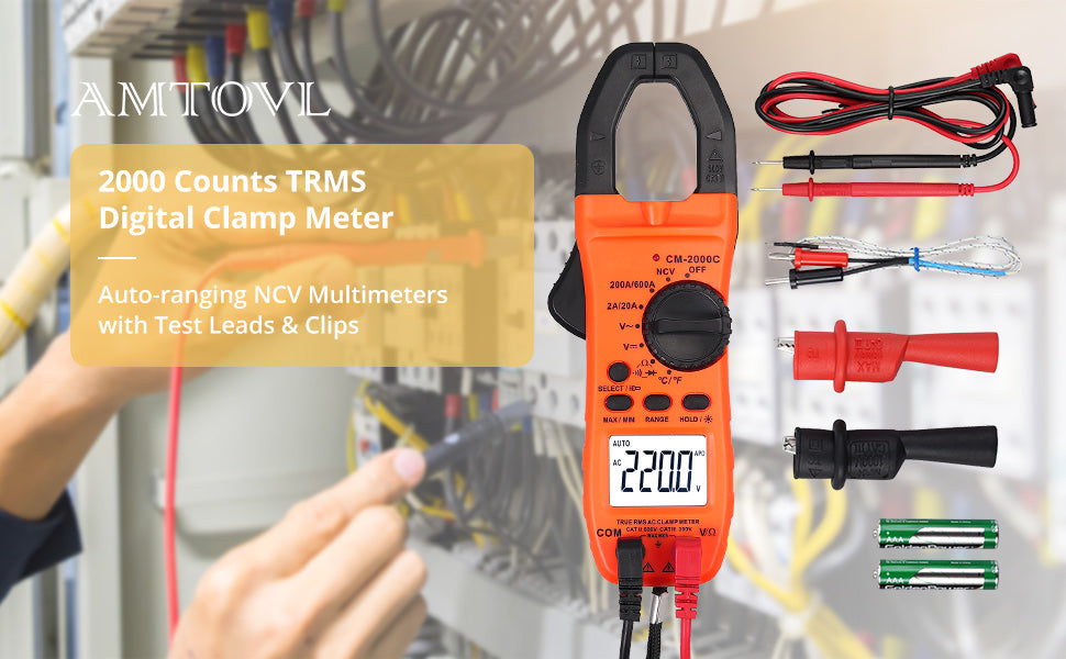 2 x 1.5V AAA Batteries(Inside the Clamp meter)