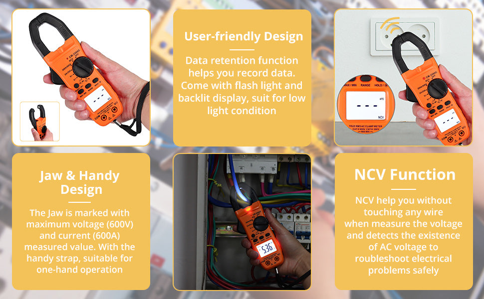 Notes: All clamp meters can measure current through a single wire, if you put two wires into the clamp jaw, the reading will be zero, only from one wire, you will get exact digits.